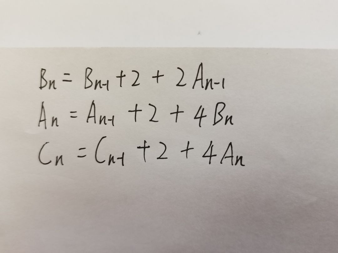 设杨志1号状态等级为An,杨志2号状态等级为Bn,凌雪状态等级为Cn,n为循环次数