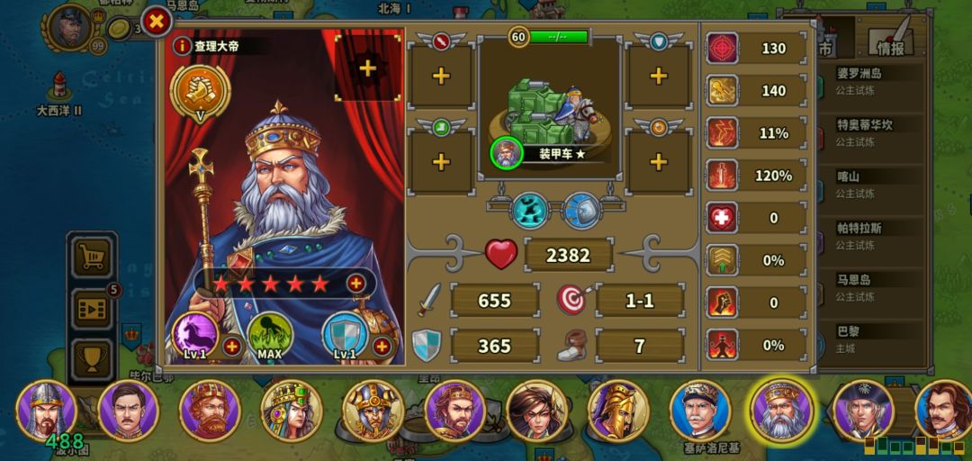 总的来说,查理曼的设计思路是相当清晰的,到后期不缺勋章的时候,拉起来当肉盾玩玩也是不错的,在公主试炼里查理曼也有出场。
