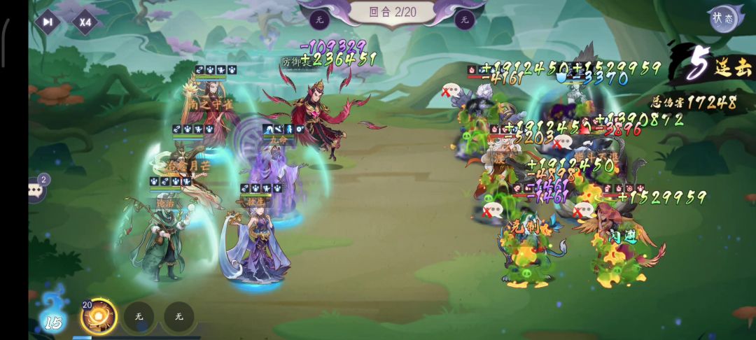 朱雀: 灼烧配凤和神农减攻减伤,给相柳增加间伤,降低敌方命中