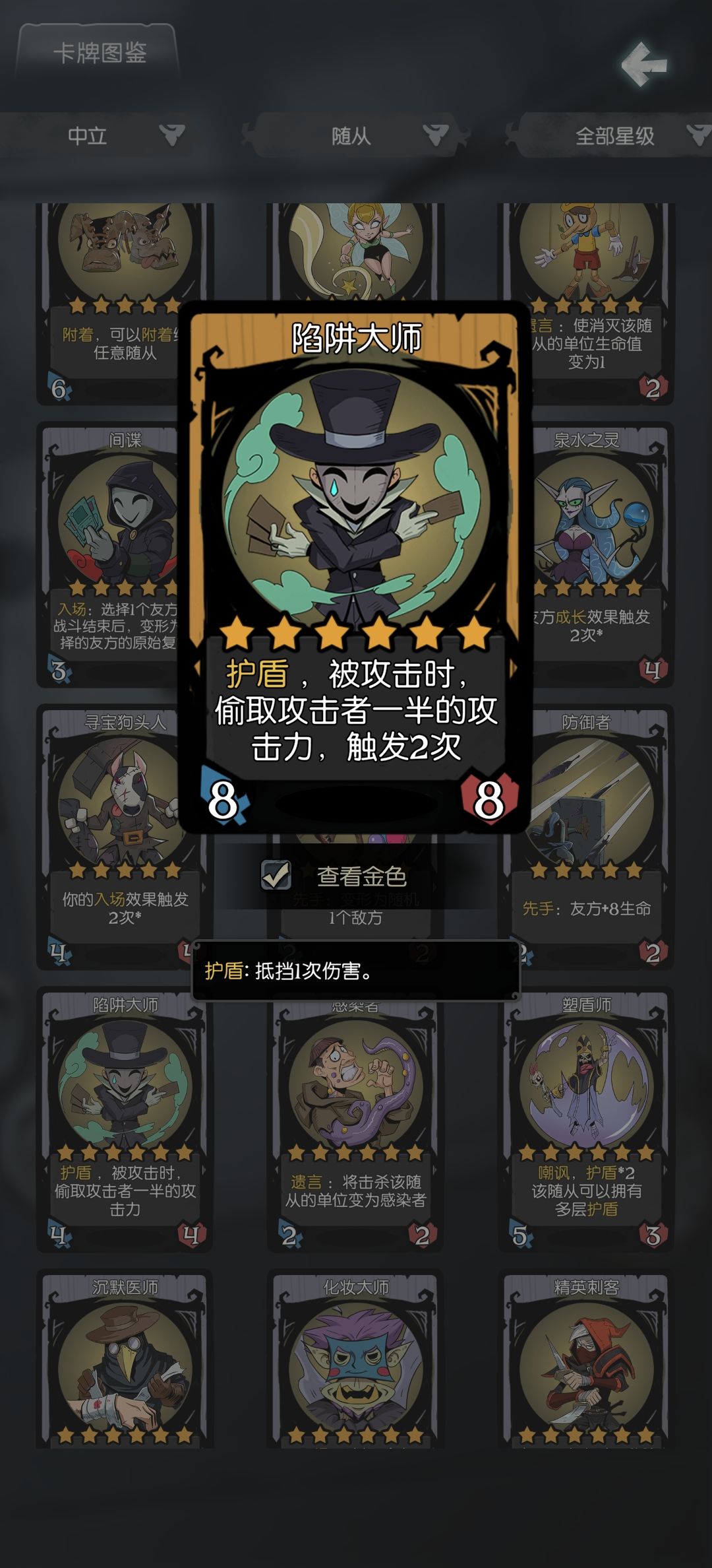 在前排T的选择上,没有选择那个自带嘲讽和多层膜的棒槌,而是选择了中立单位【陷阱大师】挨揍偷攻击这个被动真的无脑强,贴上禁止攻击和嘲讽的【盾墙】后更是强无敌。决战几百上千的大爹过来也是只能一头攒死,甚至可能还只是戳破一层膜~