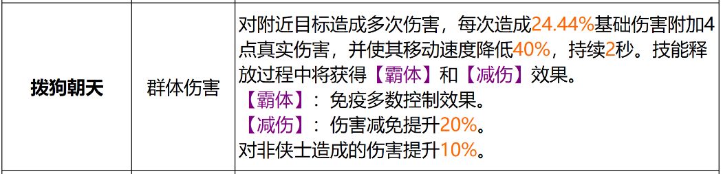 四中即封:自在步伐释放后,可在8秒内释放棒打双犬(棒打双犬效果:突进到目标身前,对身前180度半径4米范围内的目标造成两次斜打狗背的伤害,第一次攻击减速目标30%移动速度,第二次攻击有20%几率将目标击倒)。