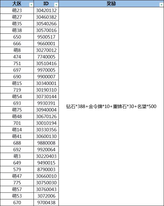 (钻石*388+金令牌*10+重铸石*30+名望*500)*30份。