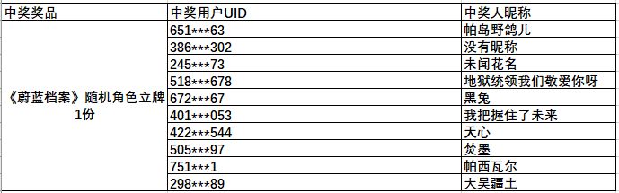 感谢各位老师对《蔚蓝档案》的支持与关注!恭喜以下幸运老师获得本次活动奖励!