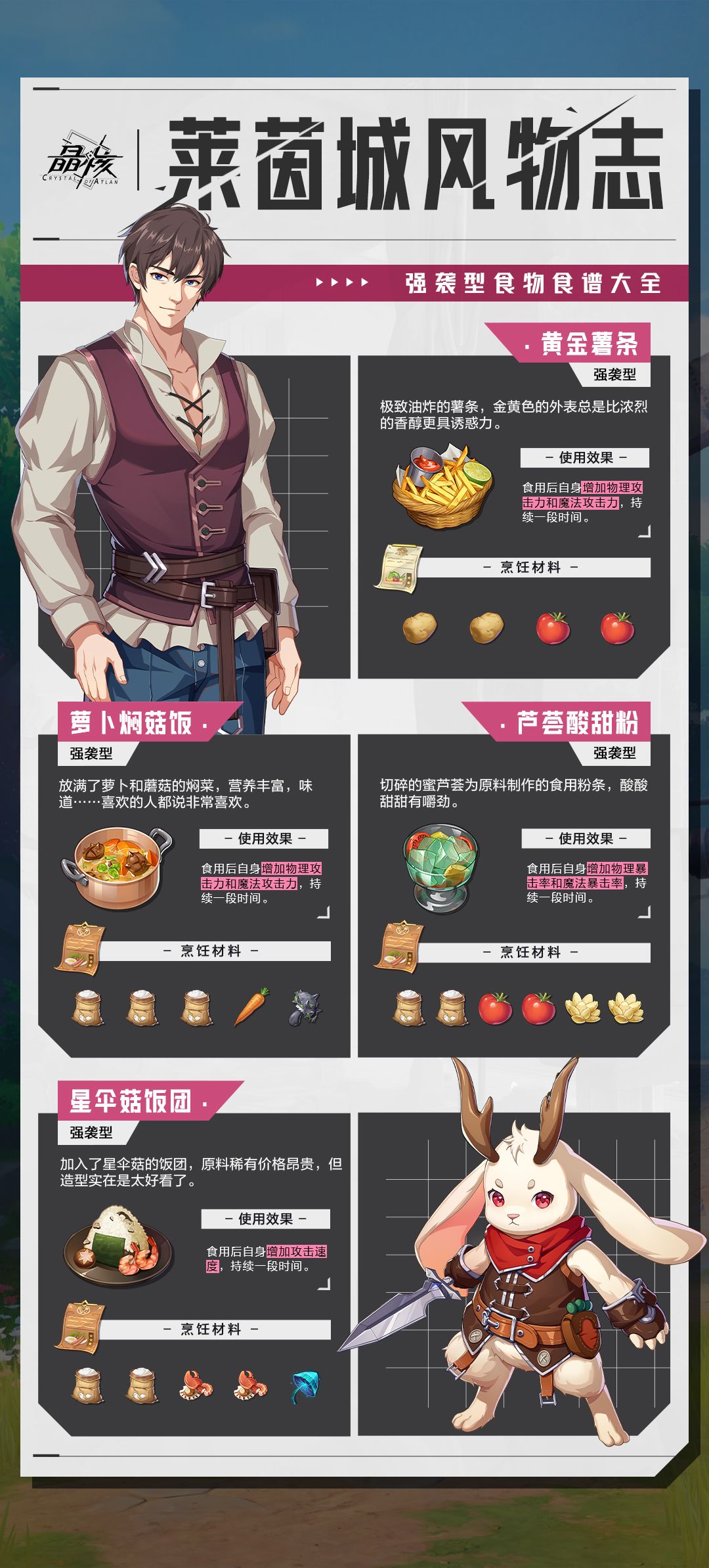 由莱茵日报社推出的全新专栏——《莱茵城风物志》来到了第四期,本期收录强袭型食物食谱大全,帮助冒险者们在战斗中强化自身能力,迅速击败敌人。