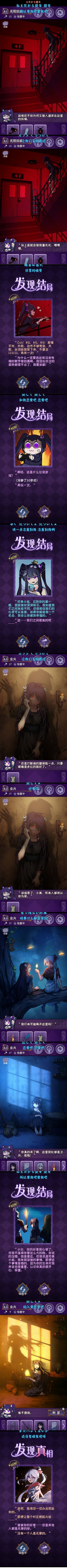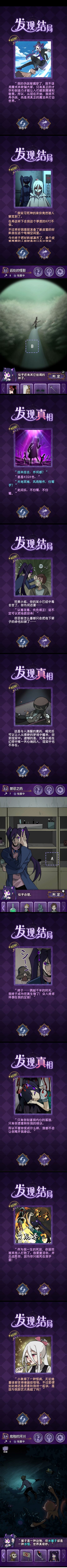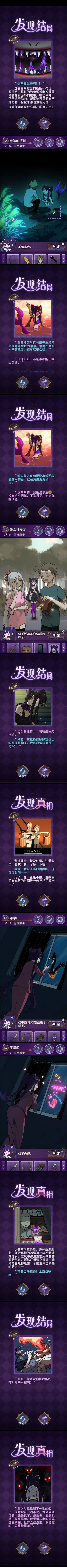 我是真的很爱拖(。)首先主线剧情没有上一部复杂,因为上一部确实是涉及到的东西有点太玄幻了...这一部就比较简单。简单有简单的好处。就是剧情会更环环相扣一些,伏笔啊回应啊也更好对上。(不过也会更好猜一点)游戏框架上,一方面因为是创新玩法不是比较普及的海龟汤,怎么说呢真的很难。。。所幸是有内置攻略要不然我真4咯,就算不看答案我每关也基本必看那个三个结局每个槽里都有多少碎片的那个提示。。要不然真的太难了。。。比海龟蘑菇汤还难。。不过另一方面,也因为脱离了海龟汤的形式,游戏部分更灵活,比如能听到物品心声是什么乱七八糟的设定xd,而且海龟汤主打的是叙事得没头没脑让你猜,故事其实一般很普通,这部因为故事的前置剧情已经给了所以结局会很猎奇,不过猎奇之外也有一些现实的感悟:吃下真实的药丸后,世界上唯一一个关心我的人变回了玩偶、就算你变成了怪物,你仍然是世界上唯一一个愿意倾听我心声的人,我很需要你...啥的,不过主要还是主打一个阴郁的猎奇吧x总体来说相比前作美工制作都有很大进步,游戏方面机制挺新鲜的玩玩挺好的x