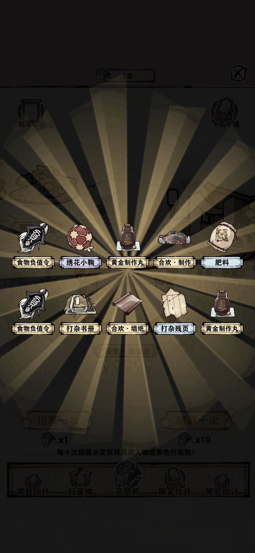 2.新的风信池!我冲!这次没有十张一起抽会出现的BUG啦!爆率感人(根据我自己的体验,单抽更容易出,因为花信风没有保底机制(。)