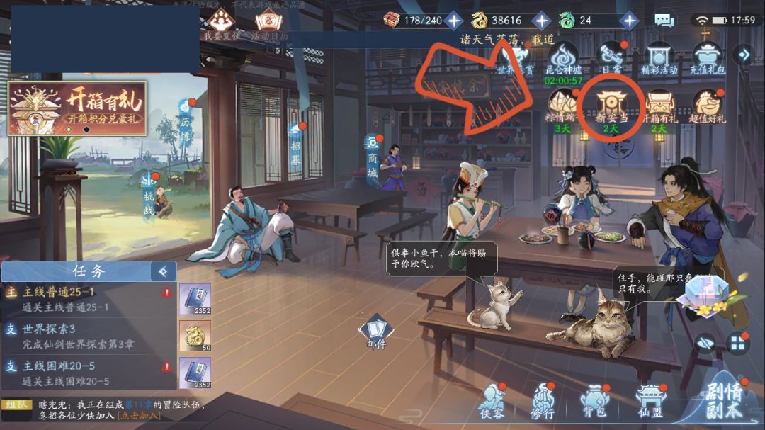 d、活动:猫德客栈、开箱有礼、姑苏夜游、幸运招募