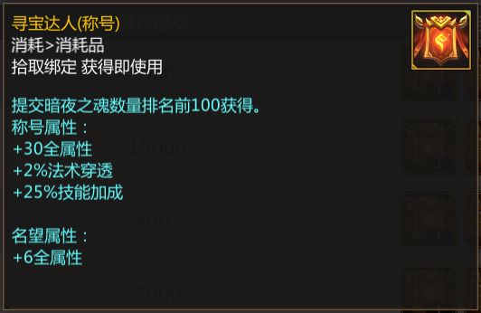 不过不同的是,在暗夜之魂提交榜中,大家获得的称号“寻宝达人”在千年冥王击败榜中获得称号则变为了“冥王克星”。