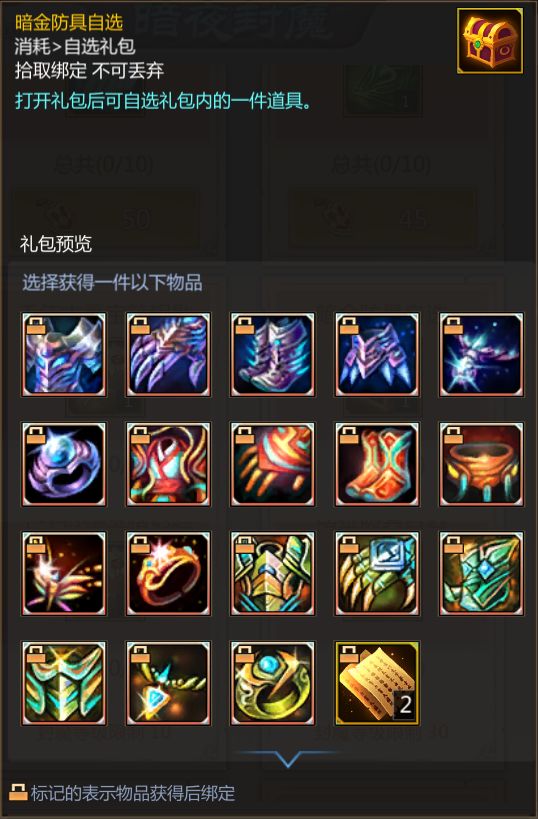 暗金防具自选就不需要梦梦多做介绍了吧,能一次性获得5件暗金装备,这样的机会可非常难得哦。