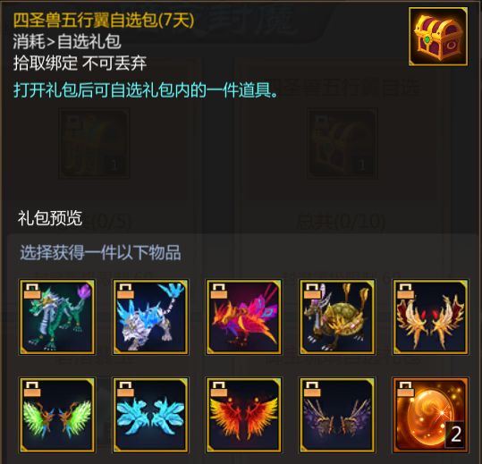 四圣兽五行翼自选礼包