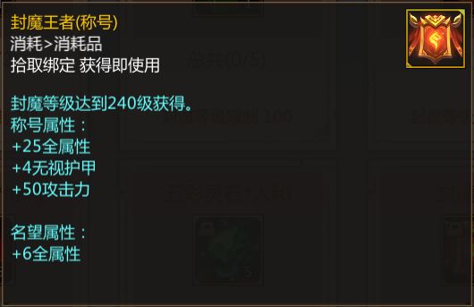 最后,当你的封魔等级突破240级的时候!