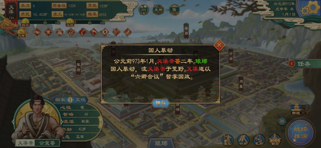 尚未完成的成就之一,目前还不了解具体触发机制,我简单说下自己的探索过程。我尝试把所有内政指标拉低,当都城叛心到达一定程度后会出现暴动,把国君赶走变成卿事寮执政,国家处于托管状态无法操作。我理解应该是下一步卿事寮篡位能够达成失败,不过可能没满足某些条件最后又还政给我了。大家如果有触发过的可以指点下,另外感觉也有可能是从摄政模式触发。