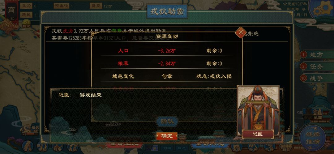 地图界面左下角戎狄-派兵征伐
