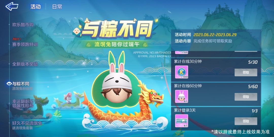 全新赛季开启,端午来临,竞渡之时!6月22日起,累计参与8次对局即可领取【流氓兔睡眠眼罩】!