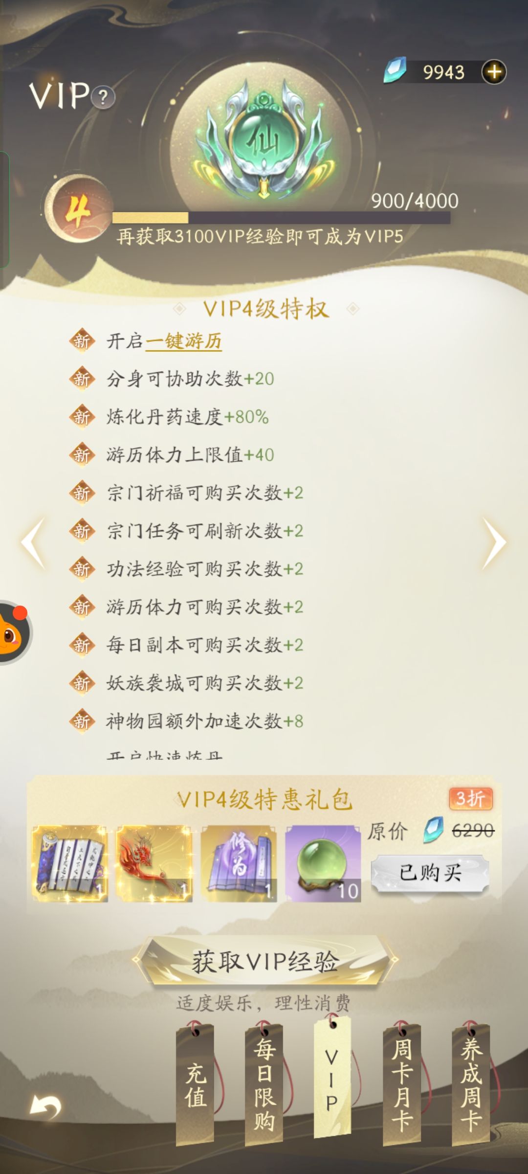 各位从各个活动,杂七杂八的充值就能看出这游戏是有多想赚钱,6块钱60灵石,而升到v4一天基础的日常任务都要花2200-2600的灵石,按照灵石换算下来一天200多块钱的花销,虽然我相信各位大佬不会傻乎乎的去充值灵石,而是购买礼包!