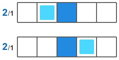 推理步骤2:蓝格一共有两个,目前已知中间的那格是蓝格,因为这一行只有一段,因此剩下那个蓝格必定和当前这个已知蓝格相连,不是在左侧,就是在右侧: