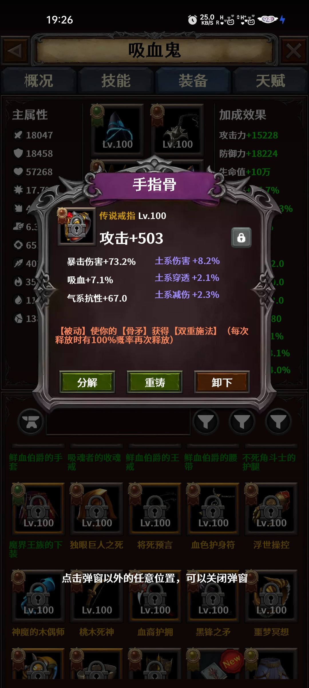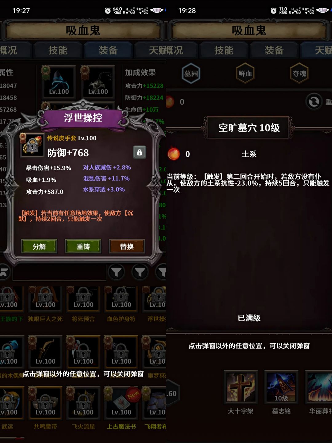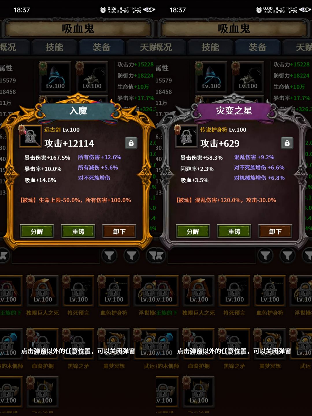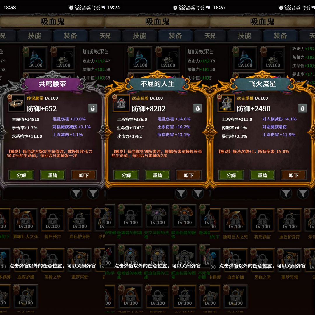 后期必备装备为入魔,灾变,高增伤,挂机速刷必备神器。
