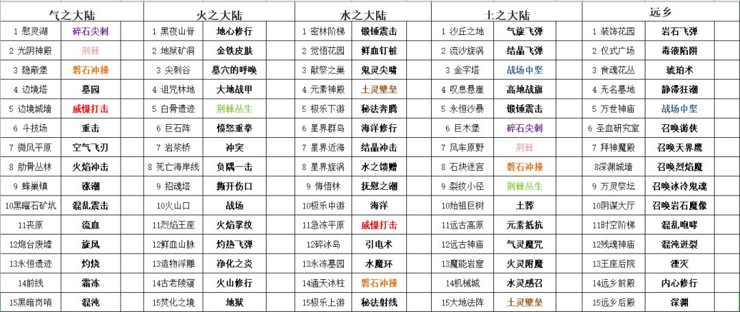 最后附一个技能掉落表