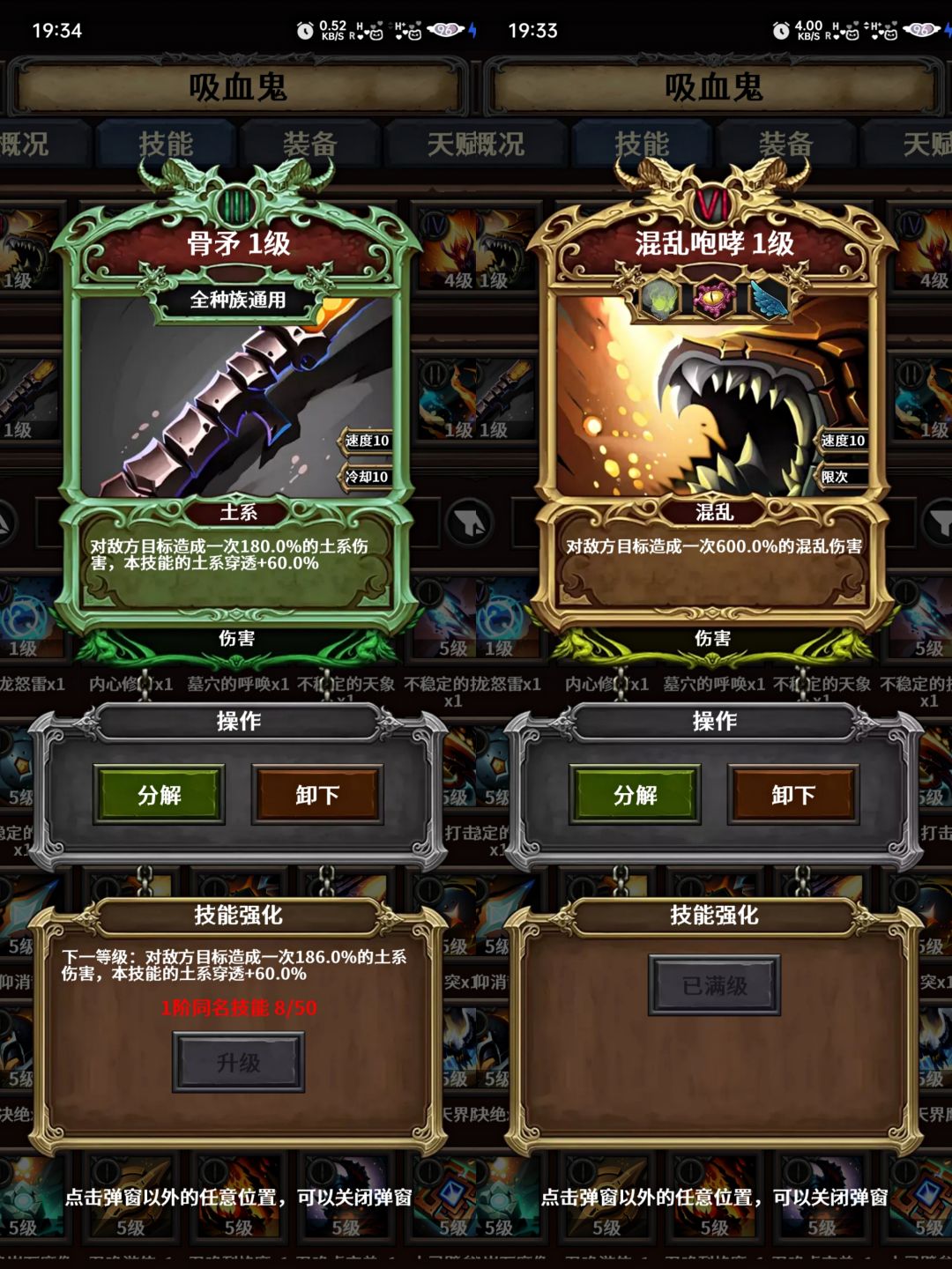 技能只带覆灭之炎和混乱咆哮(覆灭之炎只有开宝箱才出,副本无掉落,所以商店刷到五阶覆灭可以考虑买一个),配合飞火流星鞋子,达到一回合秒怪的目的。如果伤害差点可以在带个骨矛和土葬,做到第二回合秒掉。