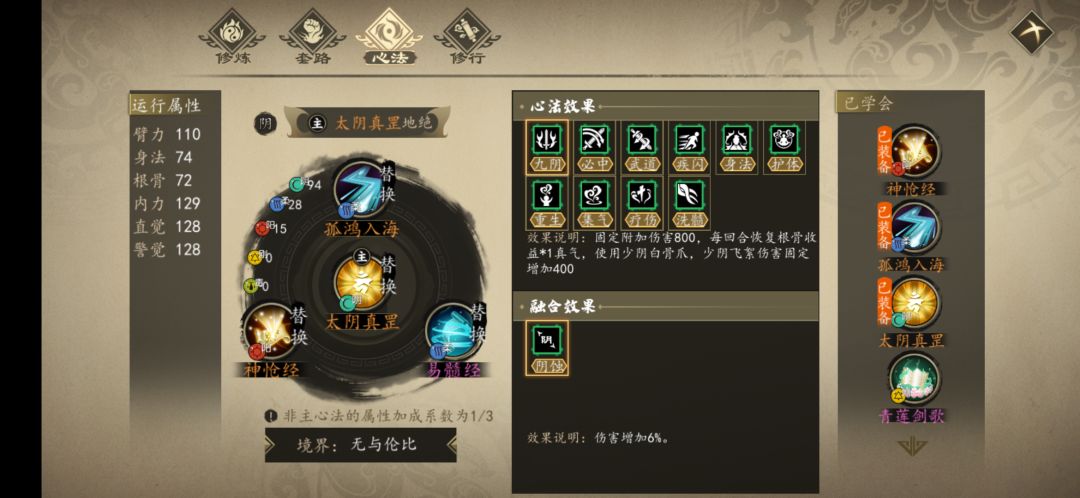 因为是开荒,所以我选的天赋是十三太保、狂战神、自愈,这样什么流派都可以玩了,不管阴、阳拳剑还是坦克流,虽然玩输出比纯攻击类天赋弱点,但胜在通用性广,适合想要体验下游戏剧情或者体验下各种流派的新人