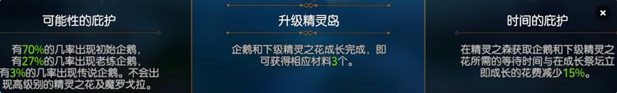 时间的庇护:缩短企鹅和精灵之花的成长时间,降低立即成长所需的费用