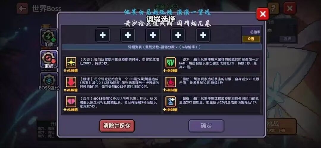 这一期帖子,我将会以自己的体验来讲述和解析世界boss的词条想看结论的可以直接点击评论,跳到帖子末尾往回翻
