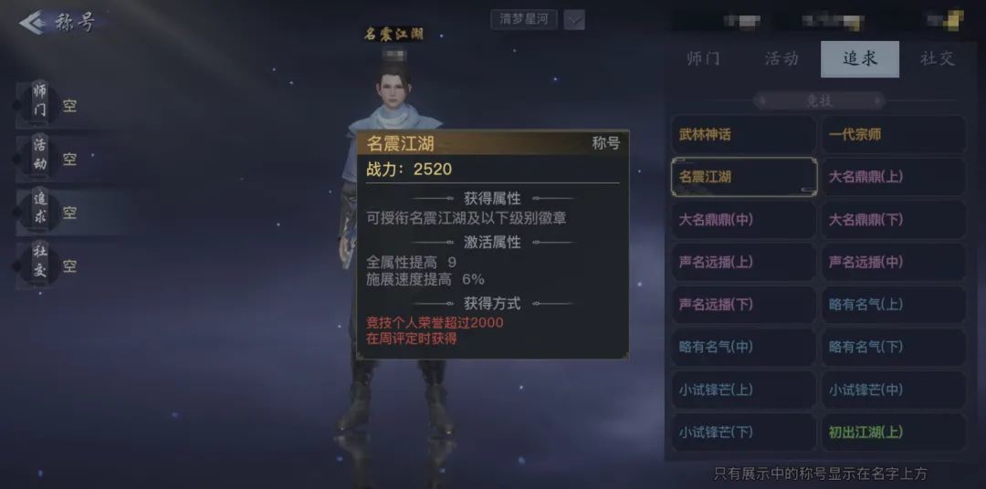 小欢先问问各位少侠,闯荡江湖,什么最重要?想必少侠们答案都是:名气和声望。毕竟人在江湖,谁还没个扬名立万的的梦想呢?如果能得到大家的肯定,再拥有一个江湖名(称)号,那别提有多帅气拉风啦~