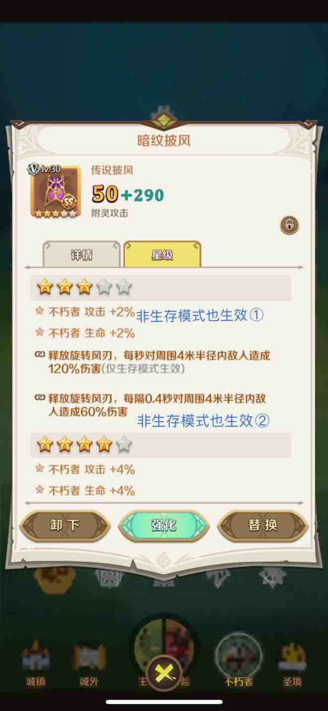 三星的玩法,围绕前面说到的属性,因为生存是通过冒险关卡后才开新关卡,刚打完冒险,正常情况的生存属性可能只能刷到1-2颗星,甚至根本打不过精英怪,这时只要把前面的关卡刷够暗灵之魄,刷到当前关卡快满的时候就能三星。数值是基本条件,数值不到,什么职业或卡也没用(比如卡在4万多兵,就是达不到5万),这里说说思路: