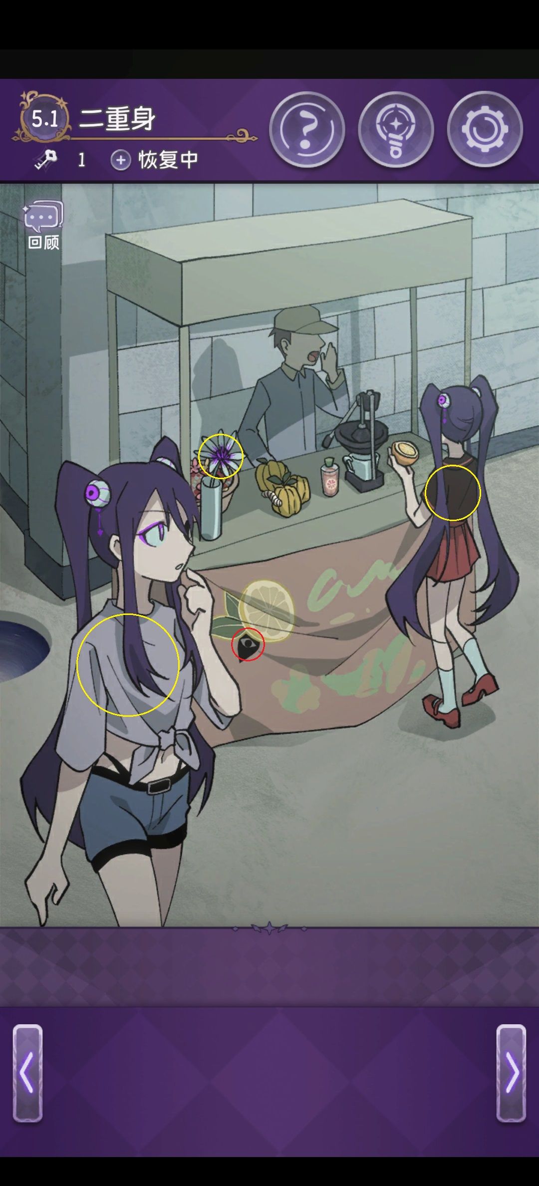 点击以下黄色区域获取故事碎片,红色区域发现隐藏怪异之手