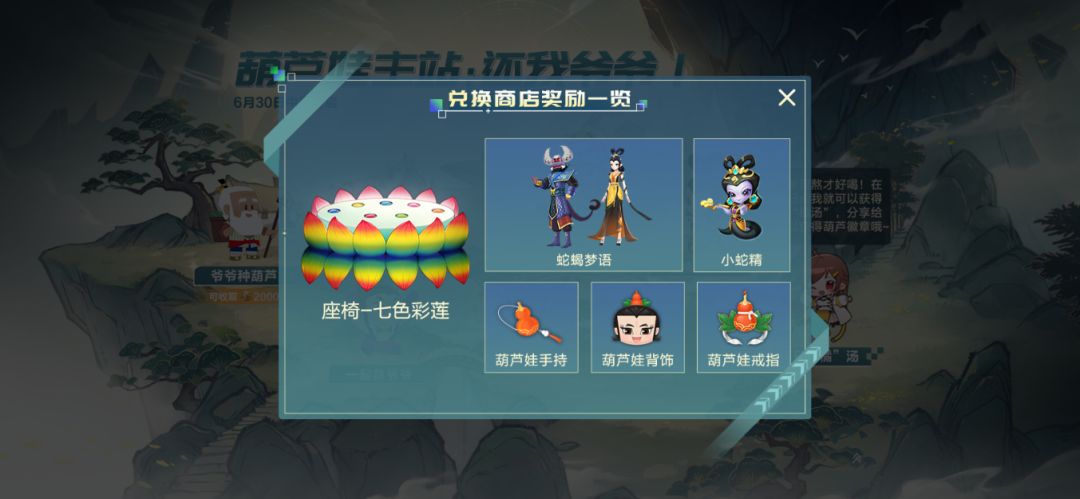 6月30日起,葫芦娃主站:还我爷爷活动正式上线!车手们登录游戏并完成爷爷种葫芦、蛇精抓爷爷、一起救爷爷等小游戏即可获得葫芦徽章,收集一定数量的葫芦徽章可前往兑换商店兑换七色彩莲座椅、蛇蝎梦语套装、宠物小蛇精等奖励!