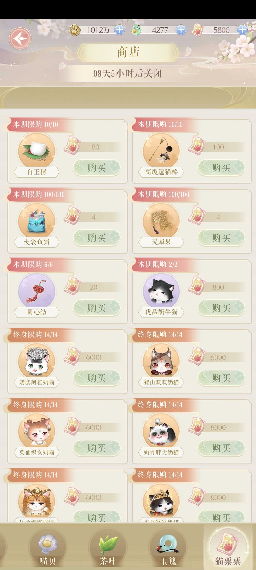 为什么我只有5800不应该是6000猫票票吗?