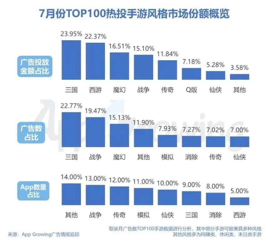 一周数据:7月游戏广告投放环比增加近三成,三国题材投放金额占比下滑近半