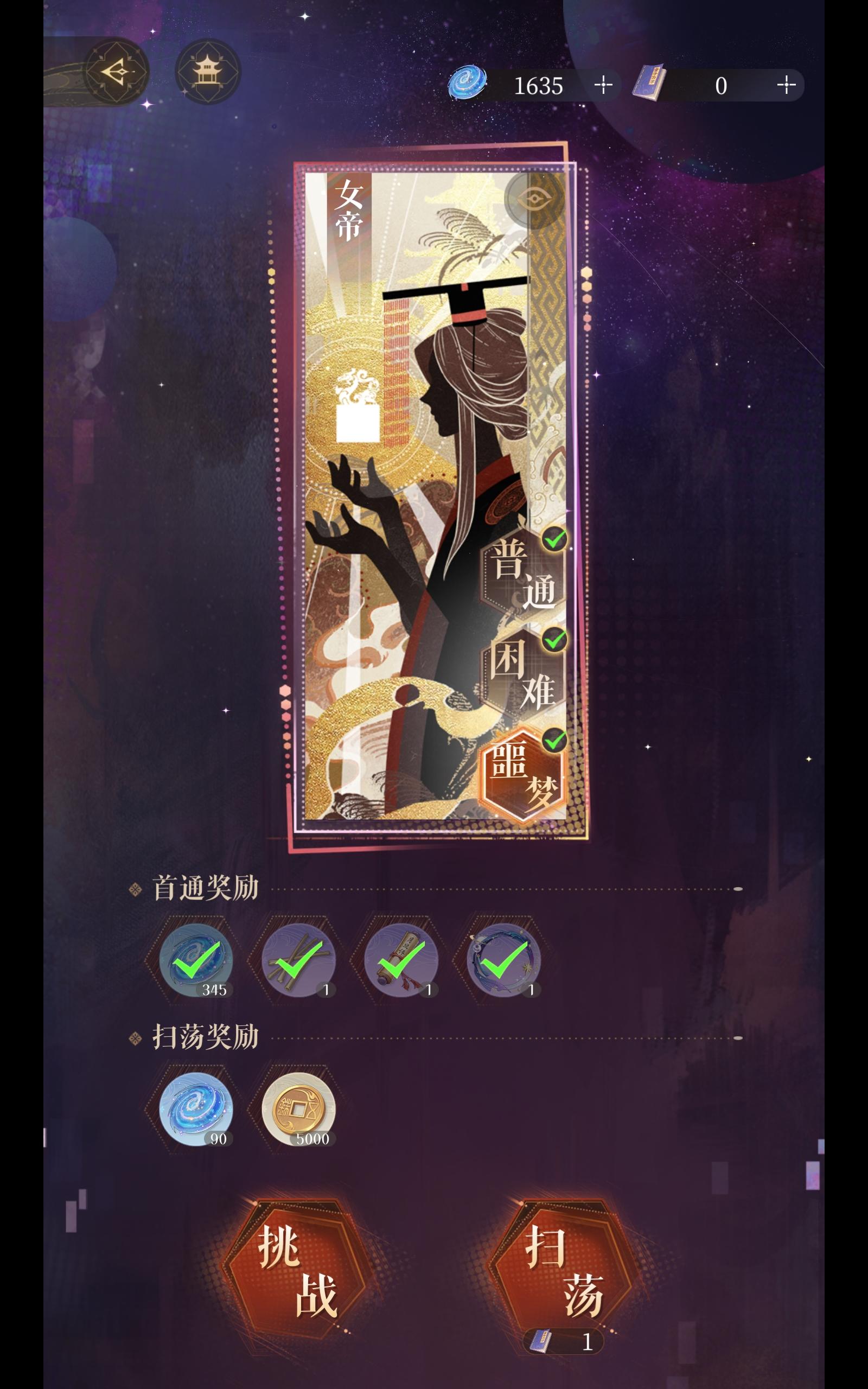 只要通关女帝的困难和噩梦关卡就有两个称号和头像框啦~
