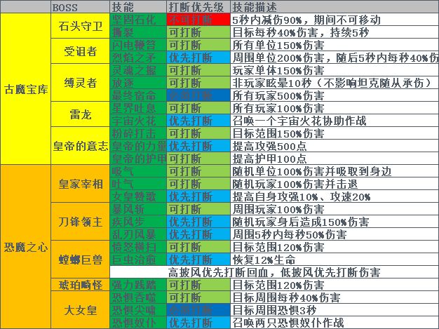 史诗级古魔宝库、恐魔之心各BOSS技能及打断优先级