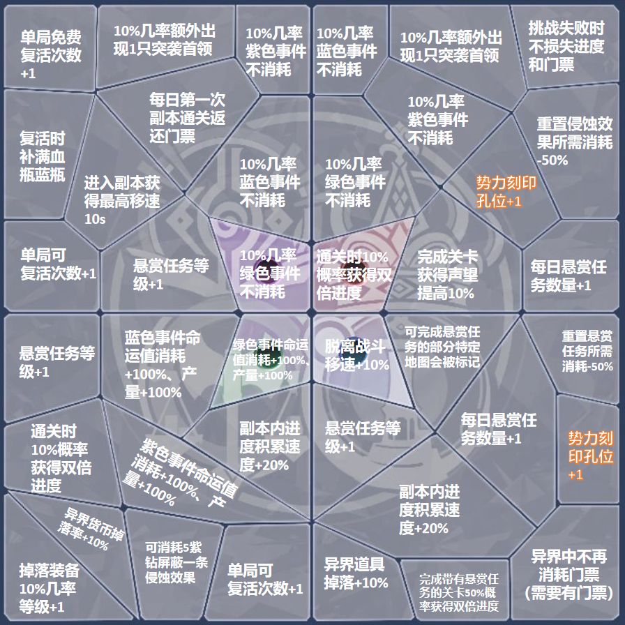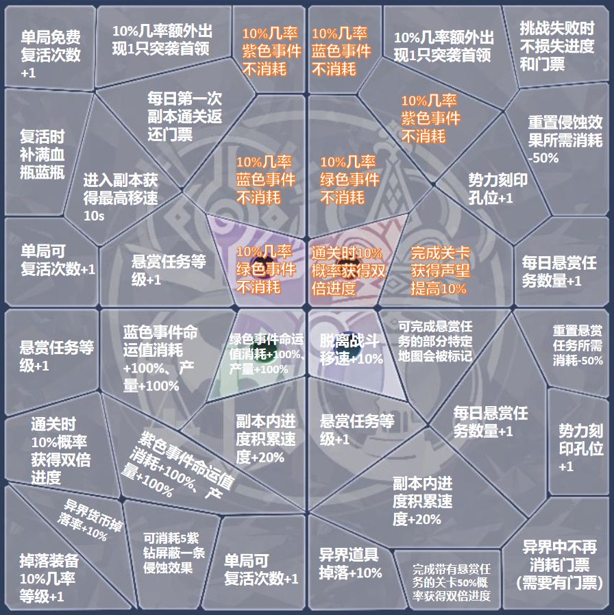 异界的每个关卡都对应不同的势力,通关就能获得对应势力的声望值。这个声望值主要是用来点亮异界天赋的,对应势力的声望值越高,可激活的板块就越多。