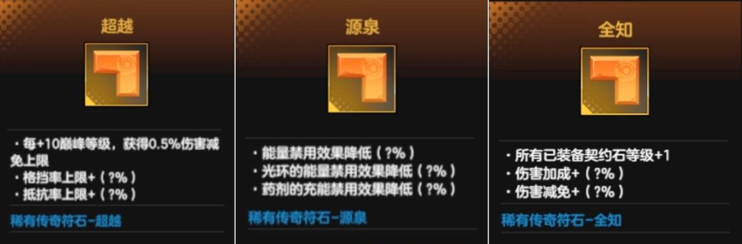 以上这些都是非常强的稀有符石,能否获得就看各位的手气了。不过没有这些符石,伤害也足够刷异界,所以大家不用太焦虑。