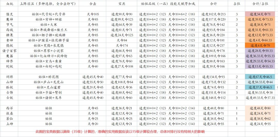 这里写的都是红娃和始祖齐了的情况下的推荐。如果缺个别红娃就需要再权衡和调整。