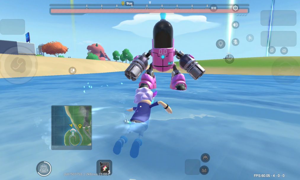 利用这个特性,我们可以在没人的机甲停留在水面上的时间等待机甲冲刺技能的冷却,做到二次甚至三次(理论上是无限的)冲刺,跨越更宽的河(⚠️等CD的时间小心老六出没!)