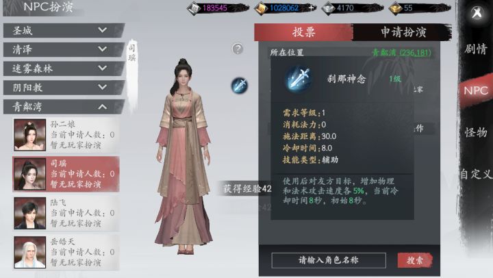 4,游戏中的全民扮演可以加成各种buff,点开全民扮演,点击NPC。就可以看到各种buff加成,幸运度,攻击力,加血量应有尽有,尤其加幸运度的,刷星盘秘境爆极道,橙色装备机会很高的