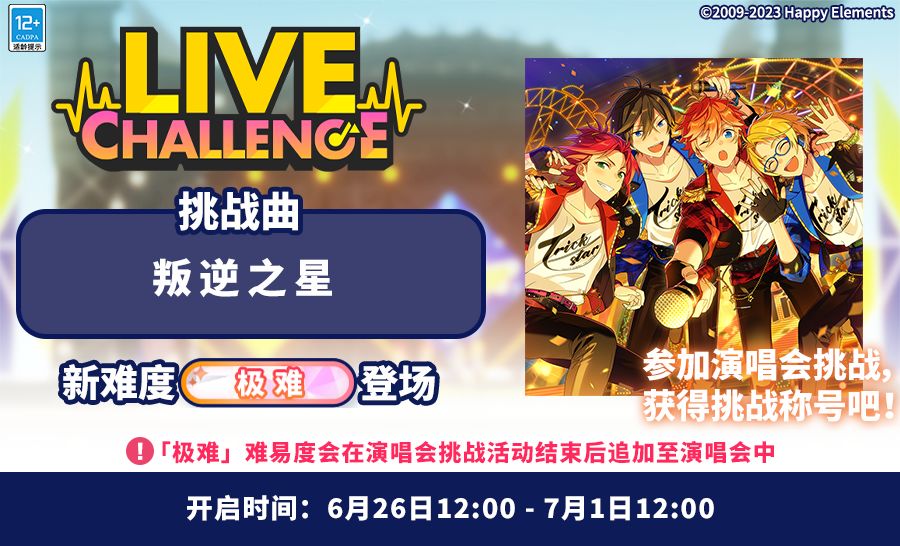 「极难」难易度会在演唱会挑战结束后追加至演唱会中。