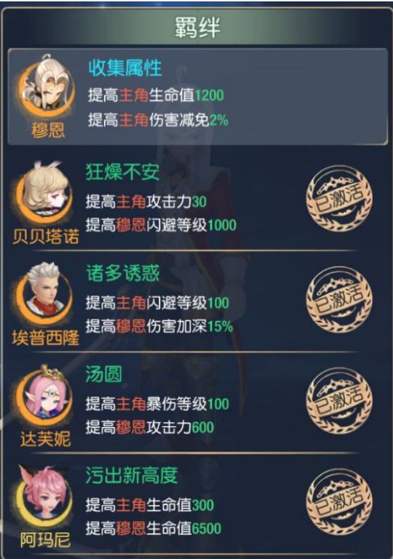 魂技能属性。获得新佣兵后即可解锁收集属性,收集齐特定的佣兵后还能激活羁绊属性。