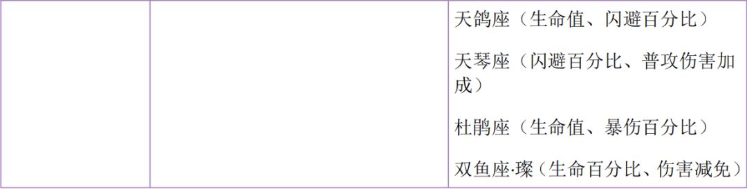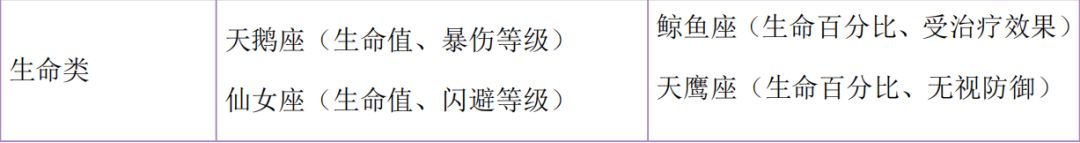 暴 击 等 级 ) 、 天 鹅 座 ( 生 命 值 、 暴 伤 等 级 )