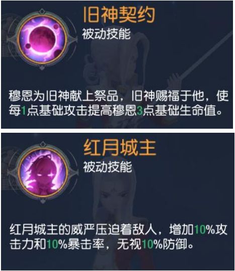 1 号位:佣兵的生命、防御、攻击 6%都会附加在人物身上。推荐穆恩因为这两
