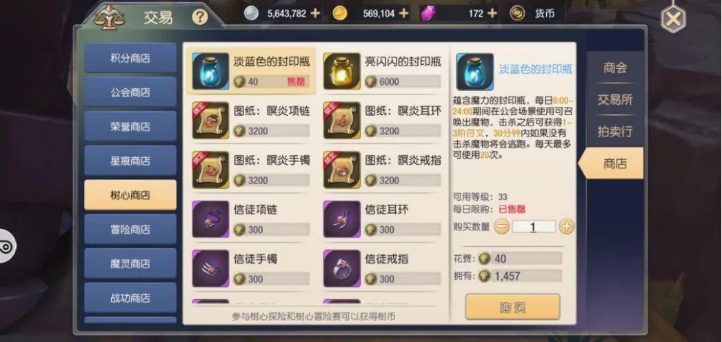 树心商店(每日限兑换 2 个,建议每日都兑换);