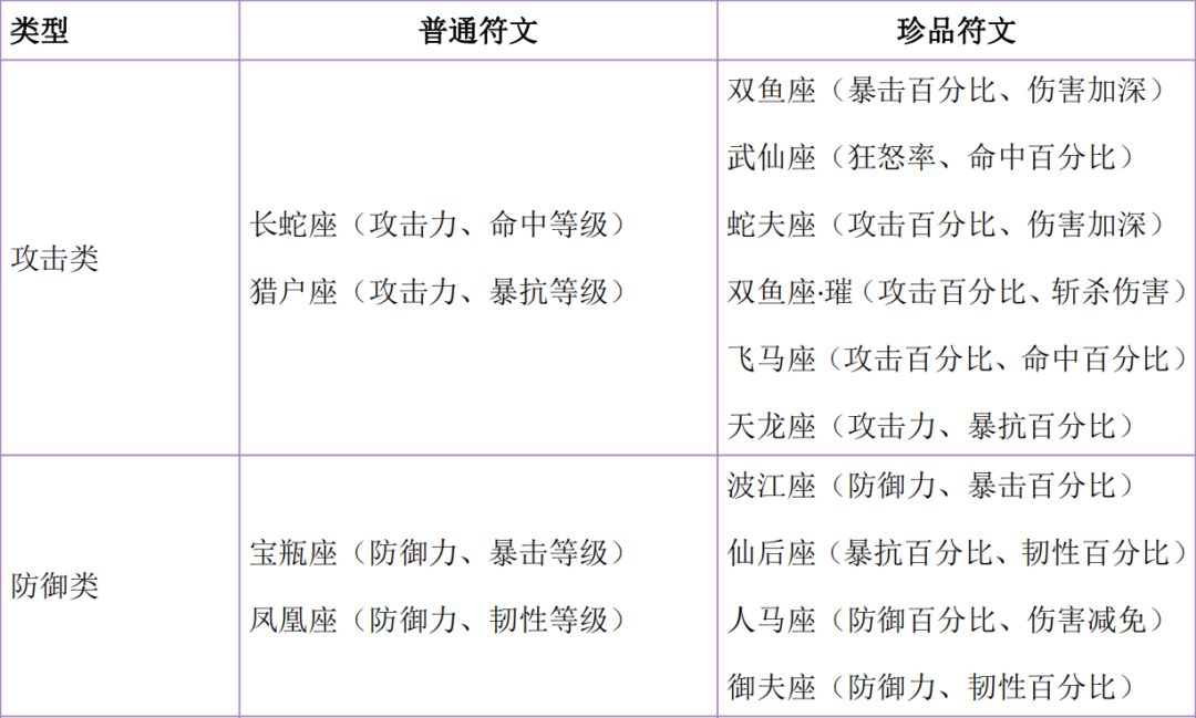 因 珍 品 符 文 获 得 较 难 , 所 以 普 通 符 文 的 选 择 对 属 性 细 节 上 比 较 重 要 。