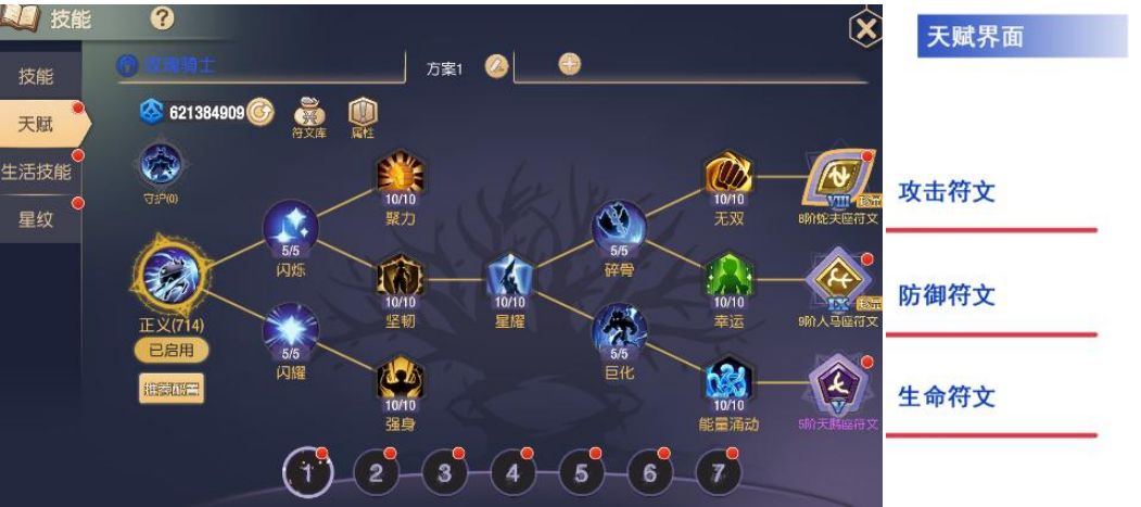 个符文。其中攻击符文 7 个、防御符文 7 个、生命符文 7 个。