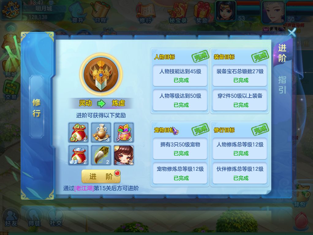 达成修行进阶可获得资源道具奖励,助力继续养成,还可获得幸运兽角,概率开出“神孕之卵”奖励!