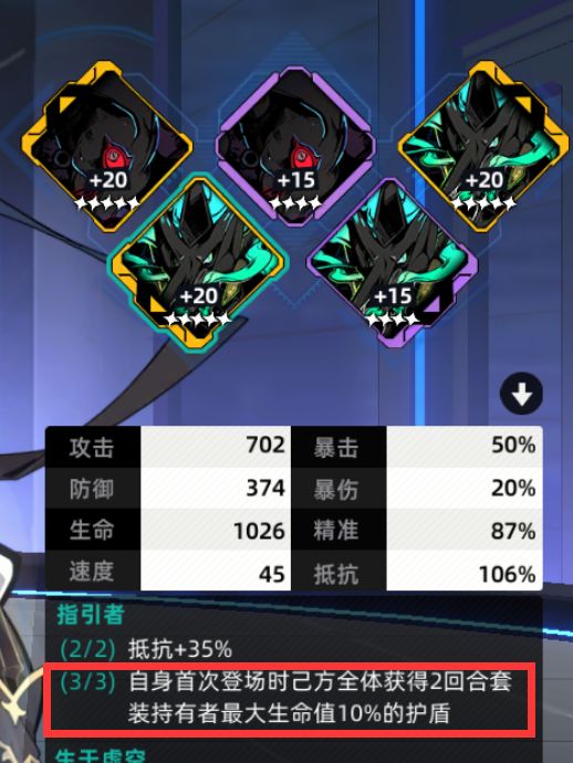 不吃回合不吃能量,受击护盾可抬高全体被斩杀线,再配合这个开局加盾的刻印,在前两回合可以给到很多的护盾,以此掩护队友的强化或叠印记。