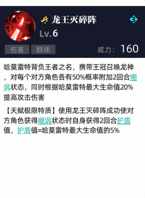 哈莫凭借更高的肉度,可以更安稳的强化。其160威力群体大招还算是个合格的威力!还附带一个唯一的嘲讽,这个嘲讽但凡触发了,对面只能用普攻,对对面的dps有很大程度的打击。