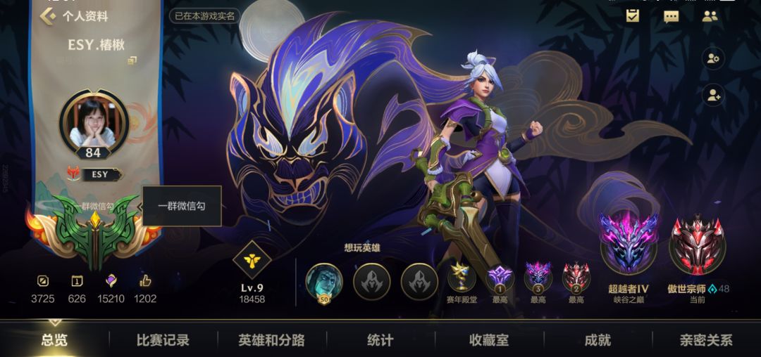 然后我点开他的战绩,胜率就没上过50,签名说微区的都是菜狗,各种战绩那些都隐藏。头像用的是女的,主玩辅助的,脾气却大的不得了,我怀疑真有什么心里疾病。